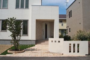 住宅の外壁が白なので、外廻りもなるべく、白っぽくということで