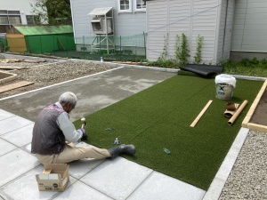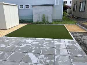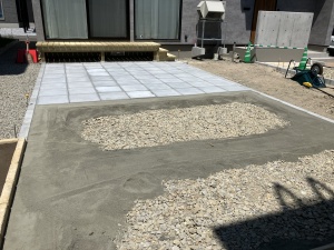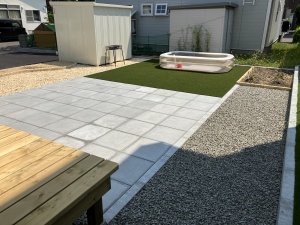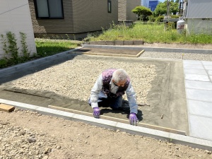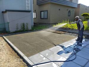 特筆すべきは最も重要な路盤下地です。特に砕石路盤の上は当社独自の浸透性モルタル下地工法に依りハイクオリティな仕上りとなるのです。一般的なやり方と違い、どこまでも真っ平らなので見た目が美しいだけでなく、裸足でゴロゴロ、水遊びやラジコンカー等幅広い用途で抜群の使い勝手の良さが数十年先まで長期に亘りメンテナンスフリーで使え、通りにストレスのない美しい街なみ景観と癒し環境になる事を願って、敢えて公開致します。