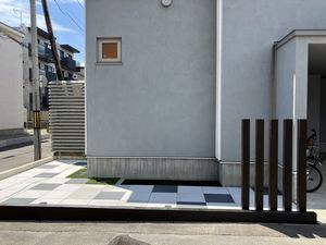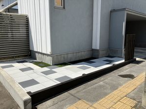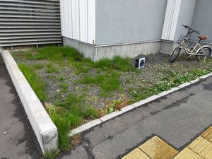 角地で雑草も生えていた為ゴミのポイ捨て等のお悩みがあり、この際しっかりとキレイにしましょう!となりました。手前と奥の高低差が大きく傾斜のある場所でしたが土留めやスキ取りして全面がフラットなテラスに生まれ変わりました。