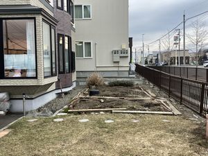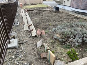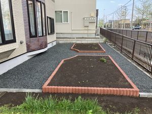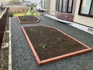 花壇仕切りに使っていた木が腐ったので取り替えたいとご相談を受け、せっかくなので防草シートと砕石も敷いてスッキリと印象を変えました。