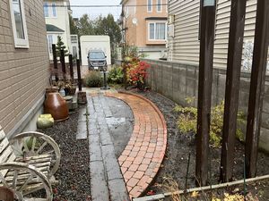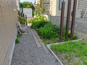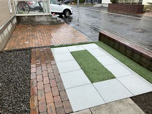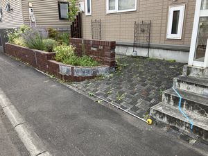 当初は他社施工のタイル貼り門塀の補修が可能かどうかとの問い合わせから始まり、最終的には庭の半分以上リフォームする事になっていました…完成後は小物を飾ったり草花を移植したり、楽しみが増えたと嬉しそうにお話しして下さいました。